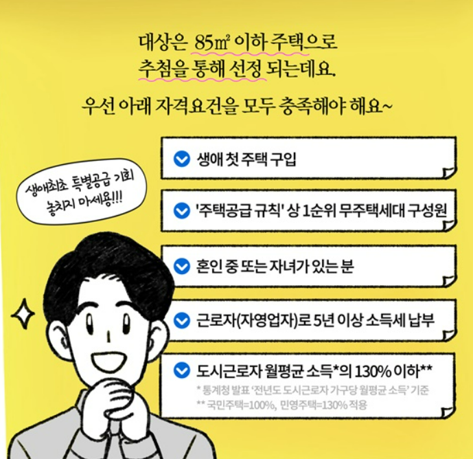 생애최초특별공급 신청을 위해서는 다음 조건들을 반드시 충족해야 합니다:
