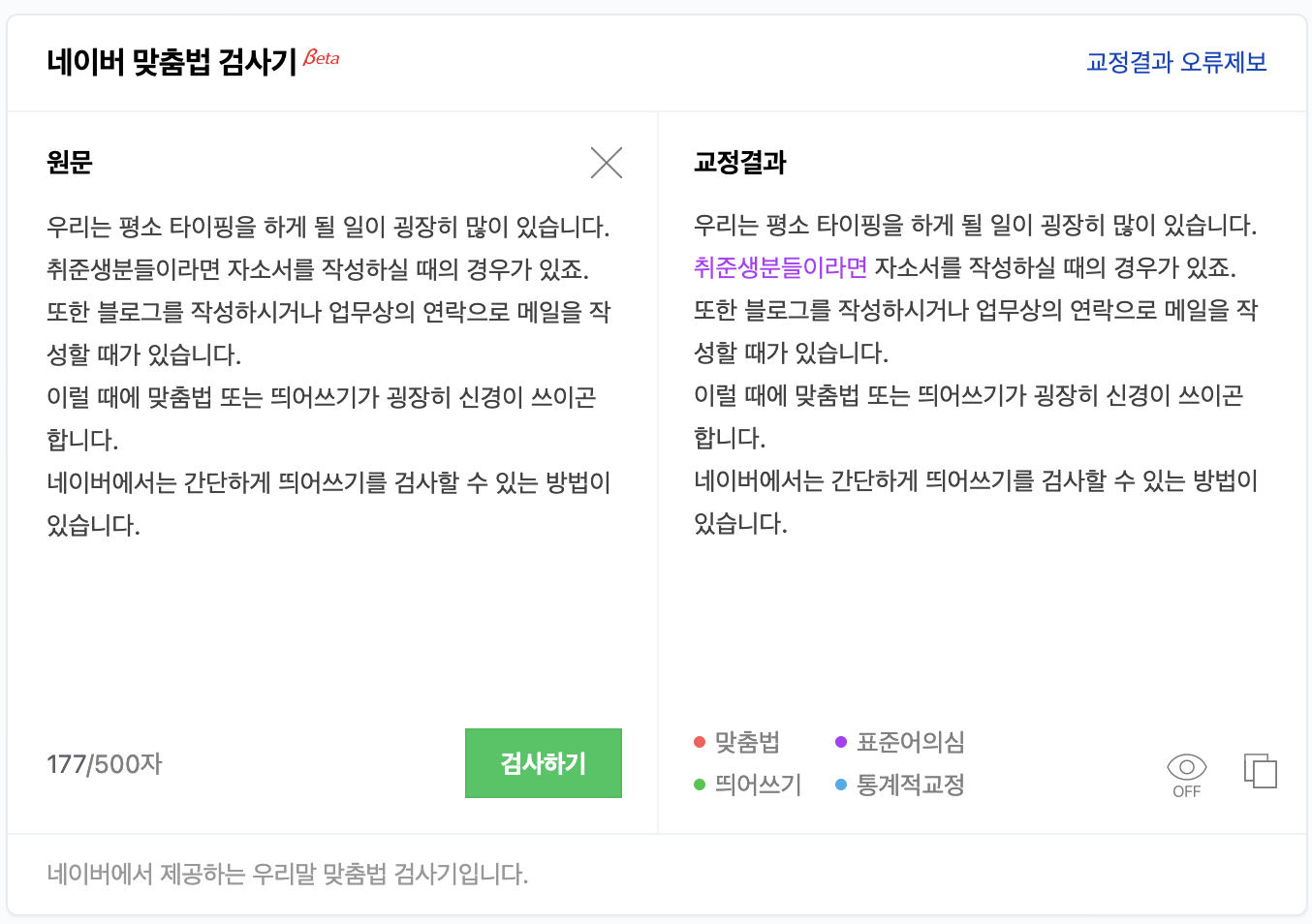 - 다중 검사 활용: 여러 맞춤법 검사기를 병행하여 정확도 향상