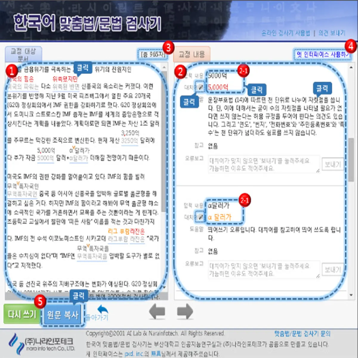 - 부가 기능: 문체 검사, 표현 추천 등 추가 기능 제공